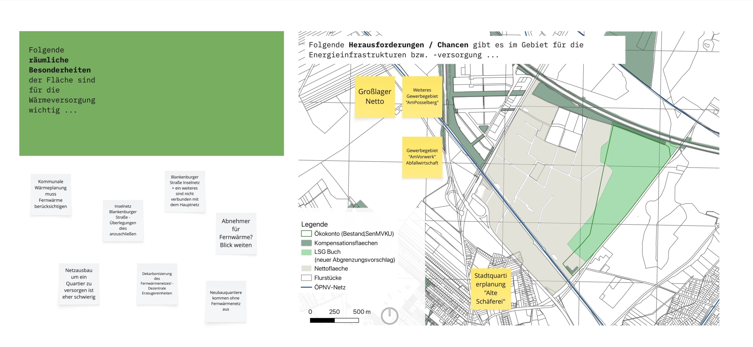 In Zusammenarbeit mit der FACT GmbH wurde eine Potenzialanalyse für eine klimaneutrale Energieversorgung für das Gewerbegebiet im Ortsteil Französisch Buchholz in Berlin Pankow entwickelt. Auf Basis der Analyse bestehender Infrastrukturen, der Potenziale Erneuerbarer Energien sowie möglicher Konzepte für Energienetze und -speicher wurden erste Ideen und räumliche Rahmenbedingungen für eine klimaneutrale Energieversorgung entwickelt und im Rahmen von Workshops mit Expert:innen diskutiert.